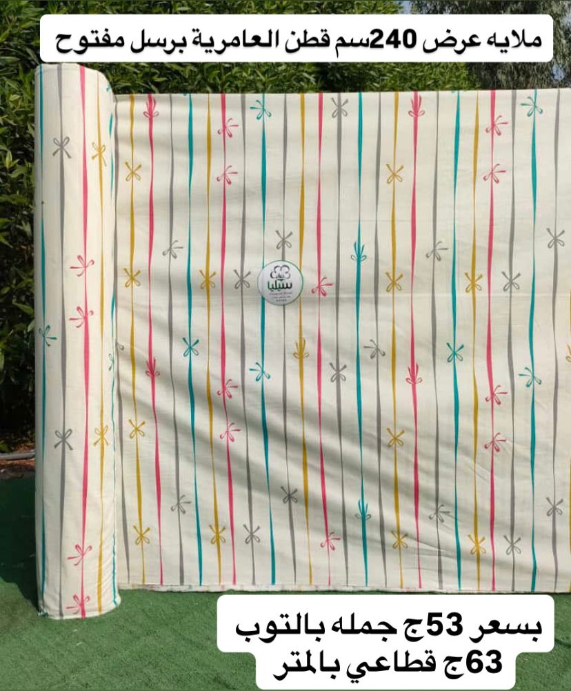 قماش ملاية قطن العامرية مشجربرسل مفتوح TC145عرض240سم