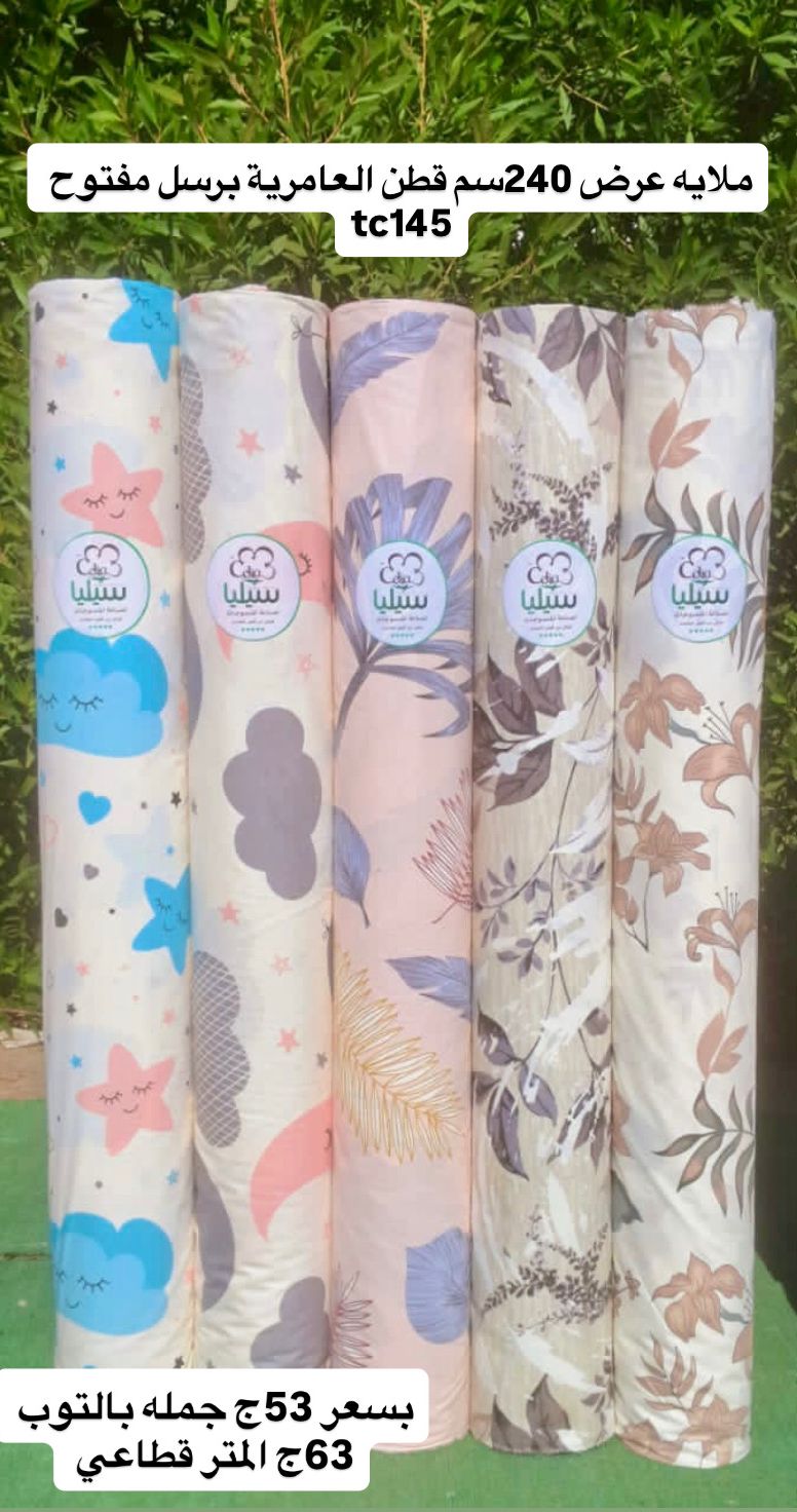 قماش ملاية قطن العامرية مشجر برسل مفتوح TC145عرض240سم
