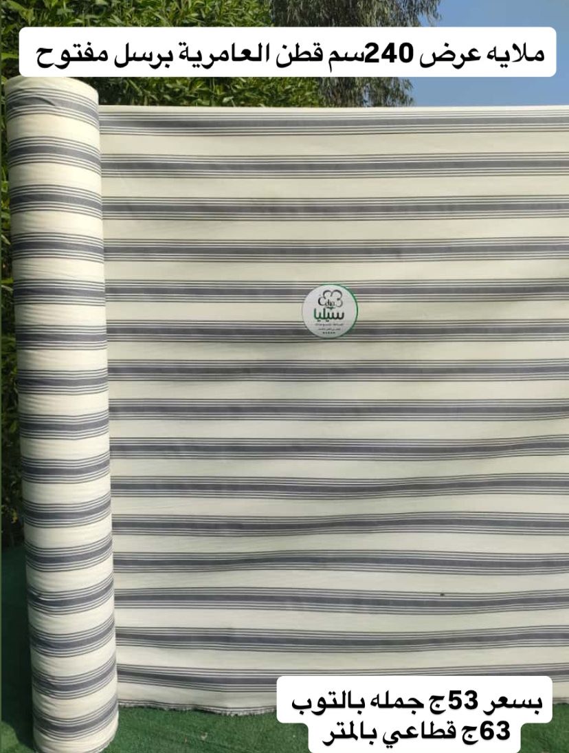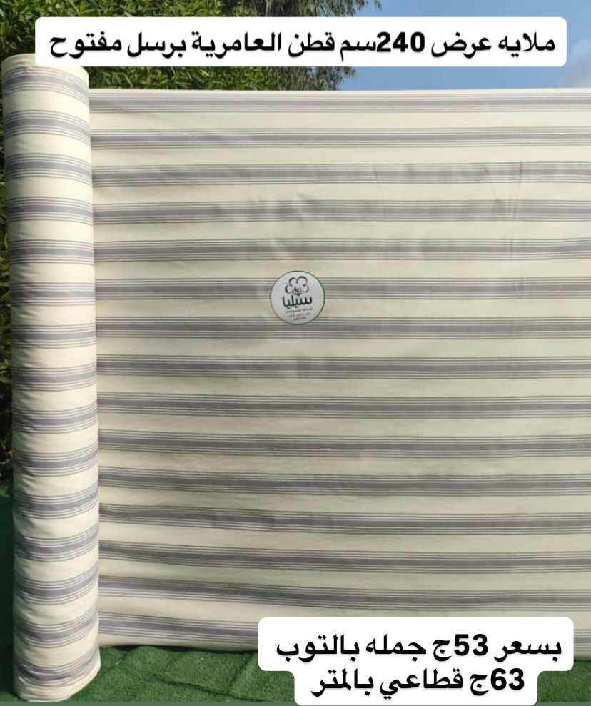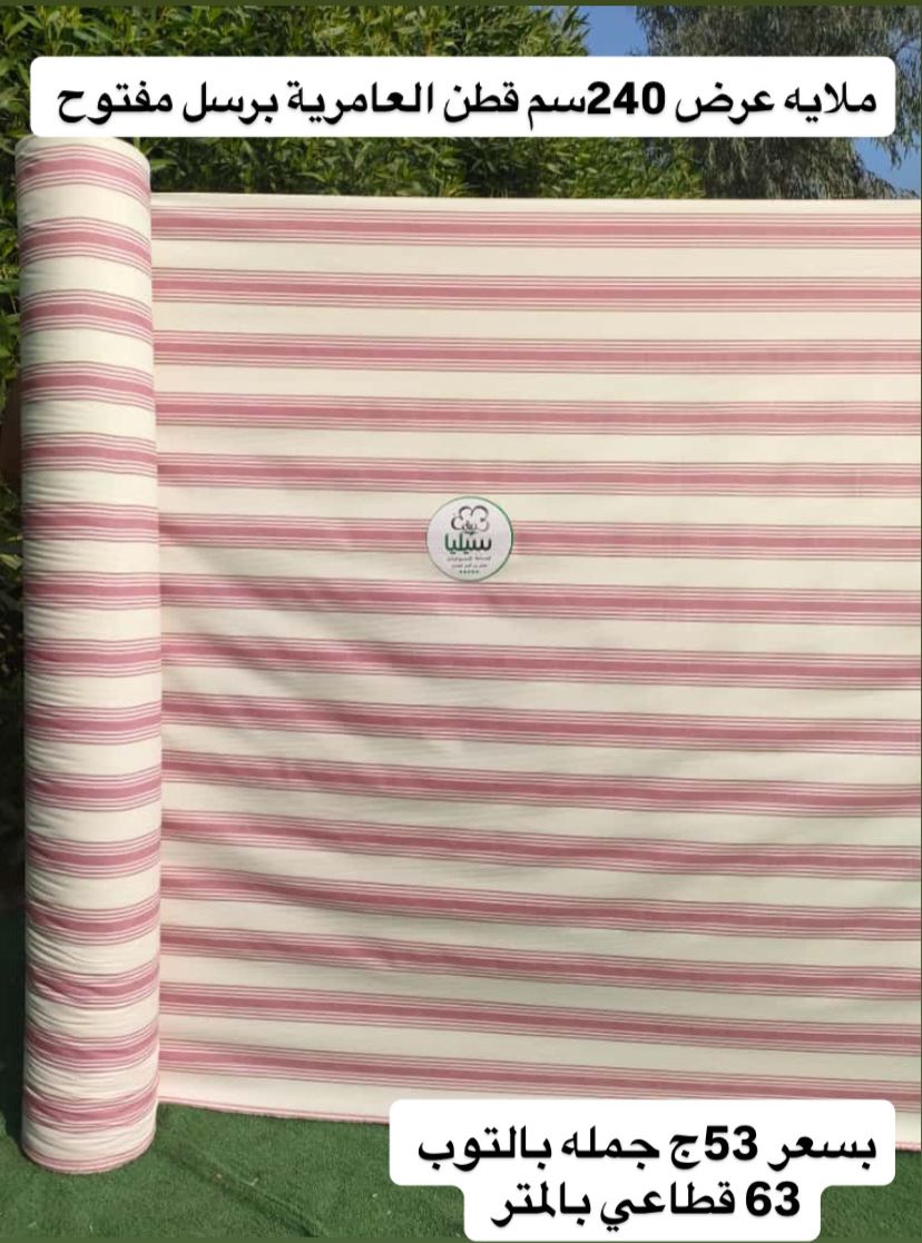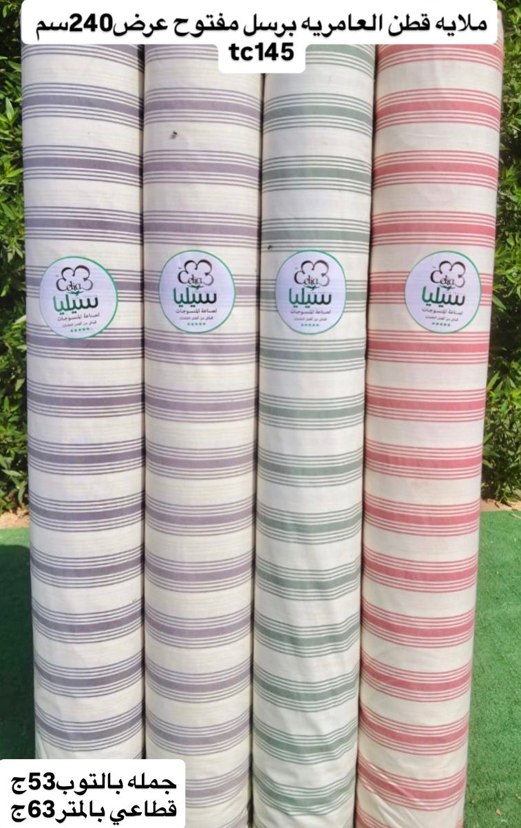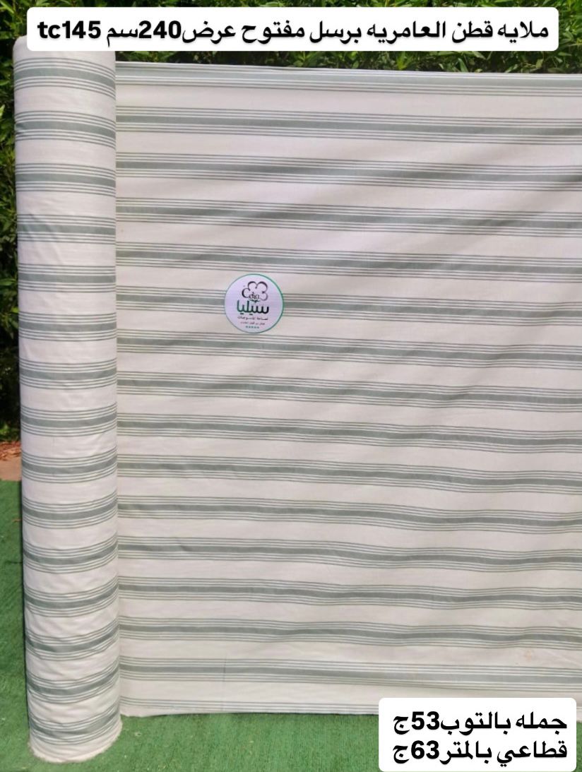 قماش ملاية قطن العامرية مشجر برسل مفتوح TC145 عرض240سم